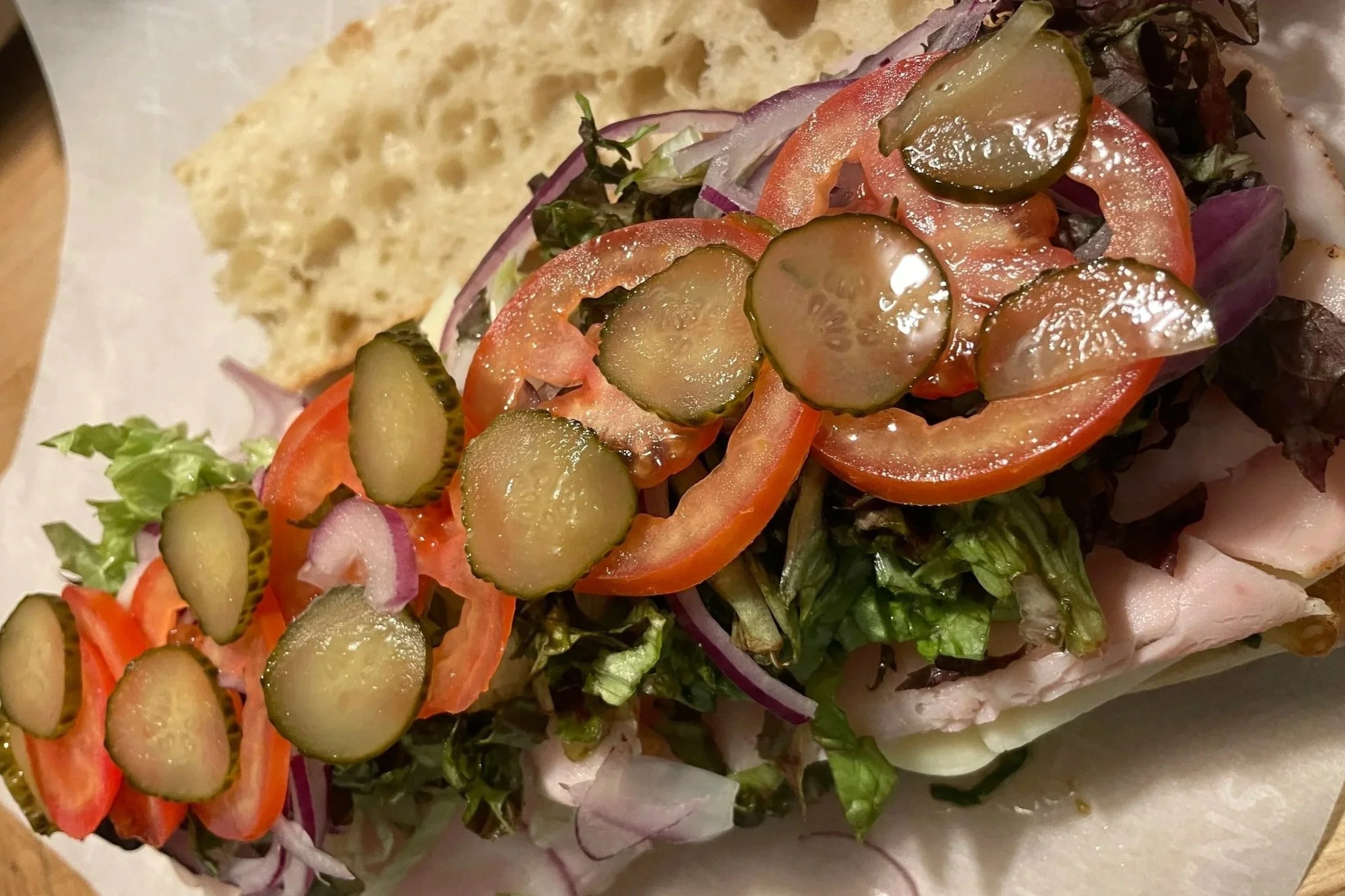 ↑これ、昨日私が食べたランチの、サブ(バゲットを使った細長いサンドイッチ)です。